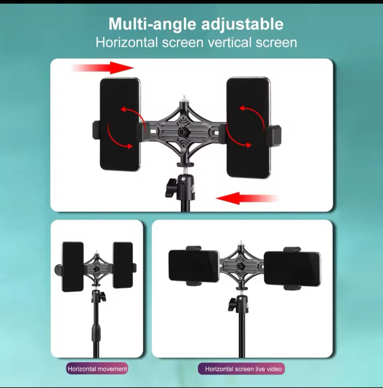 Enhance your content creation with the Ring Light with Universal Dual Position Mobile Phone Clip and Mini Metal Desktop Multi-function Tripod Bracket Holder. Designed for live streaming, video calls, vlogging, and photography, this versatile ring light offers adjustable brightness for perfect lighting in any setting. The dual-position phone clip provides flexible angles for capturing the best shots, while the sturdy metal desktop tripod ensures stability and easy positioning. Its compact and multi-functional design makes it ideal for desktops, giving you professional lighting and hands-free convenience wherever you work or create.